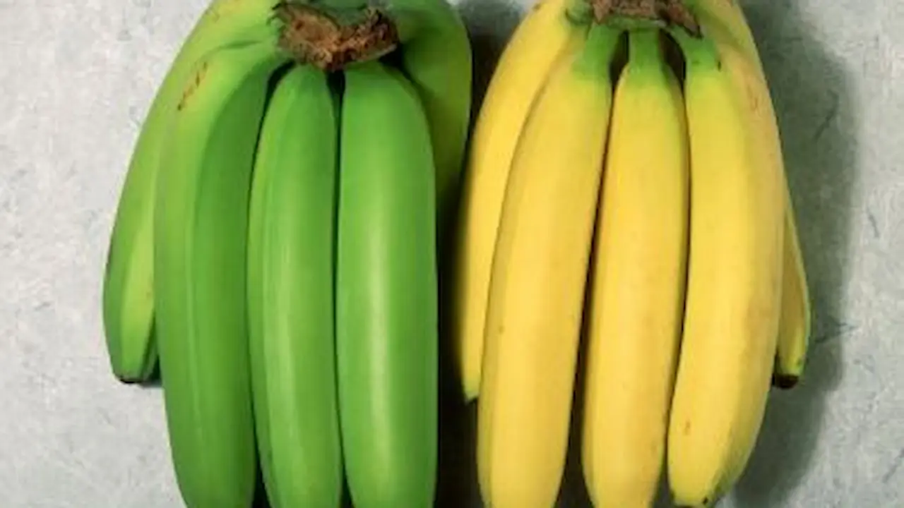 - Start by peeling the bananas. They will be green, so soaking them for about five minutes in hot water before peeling will make this easier.