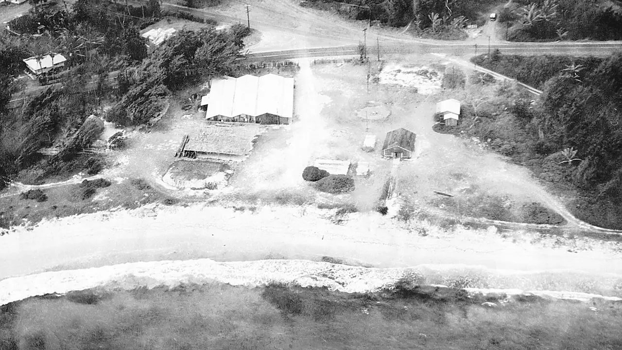Although the wave did not reach high into Laie, it was powerful. At that time the shoreline was farther out. The water washed up to just above the highway.