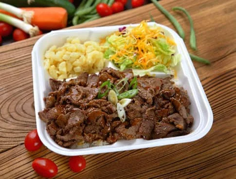 Beef or chicken slices grilled our broiled in a sweet teriyaki marinade.